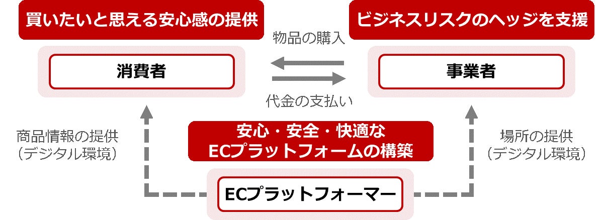 このような状況を踏まえ、ECプラットフォームを取り巻く関係者が、安心してご利用いただける環境構築を後押しし、ECプラットフォームおよびデジタル社会の健全な発展に貢献するべく、ECプラットフォーム上で行われる物品の取引に係るトラブルがあった場合に、関係者が支出する費用、賠償責任の負担などのさまざまな損害を一つの契約で幅広く補償できるECプラットフォーマー専用保険を開発し、今月から販売を開始します。