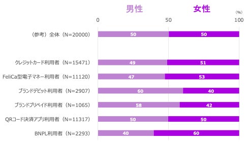 ■  ブランドデビットやブランドプリペイドの利用者は男性の比率が高く、BNPLの利用者は60%が女性