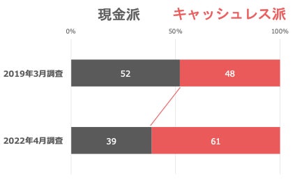 ■  2019年と2022年の調査を比較すると現金派は大幅に減少(52%の多数派から39%の少数派に)