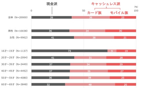 <日本の消費者を「現金派」と「キャッシュレス派」に分類>