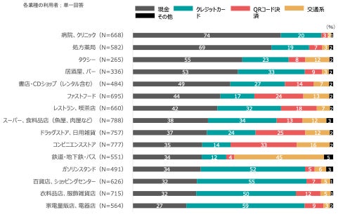 ■  QRコード決済は、ファストフード・ドラッグストア・コンビニで多く利用される傾向