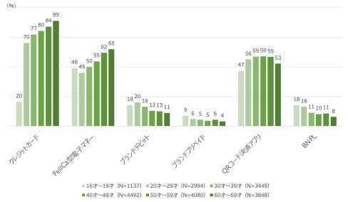 ■  ブランドデビットやBNPLは若年層の利用率が高い傾向