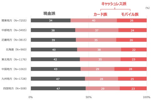 ■  地域別でみると、現金派の割合は「西高東低」(西日本地域で現金派が多い傾向)