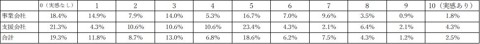 Twitterが自社のビジネスに貢献している度合いについて、11段階評価で、0の【実感なし】が19.8%。10の【実感あり】は2.5%にとどまり、ビジネスとしてTwitterをうまく活用できていない企業が多いことが分かった。