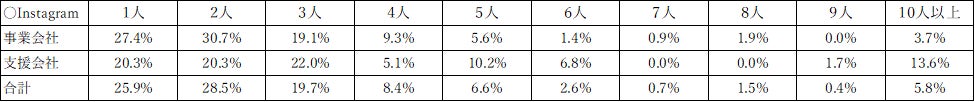 して、Instagramは11.0%となり、Twitterは少数(1人が多い)で運用している企業が多いことが分