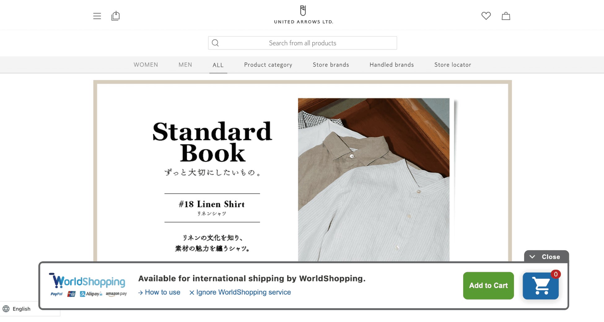 『ユナイテッドアローズ オンライン』(https://store.united-arrows.co.jp/)は、海外販売(越境EC)対応のパートナーとして、多言語対応、海外決済、海外配送を一気通貫で行うジグザグの『WorldShopping BIZ 』を採用。これにより、JavaScriptタグを1行追加するだけで、特別な開発や運営オペレーションの変更を一切伴わずに、世界228の国と地域に向けての海外販売対応が実現します。