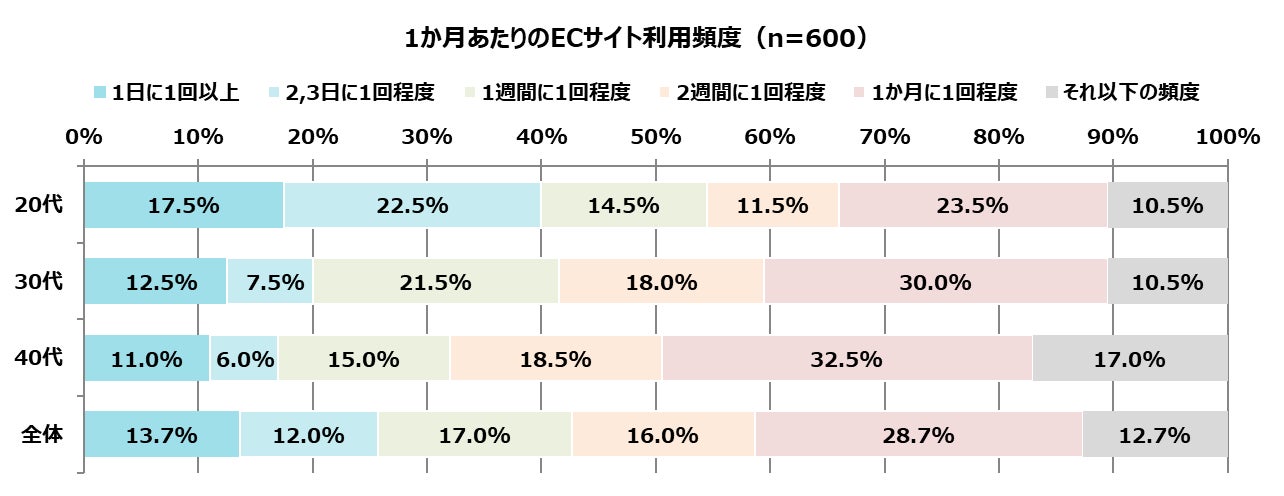 ■1か月あたりのECサイトの利用頻度をお答えください。(n=600)