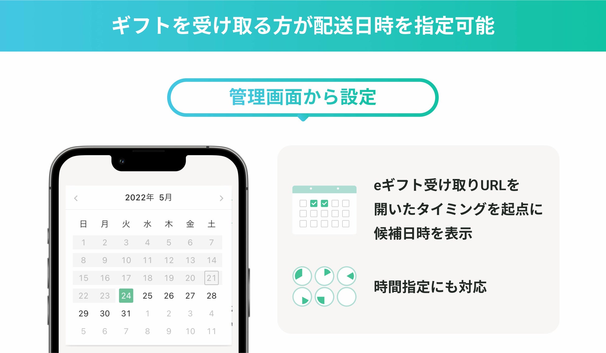 eギフト受け取りURLを開いたタイミングを起点に候補日時を表示します。