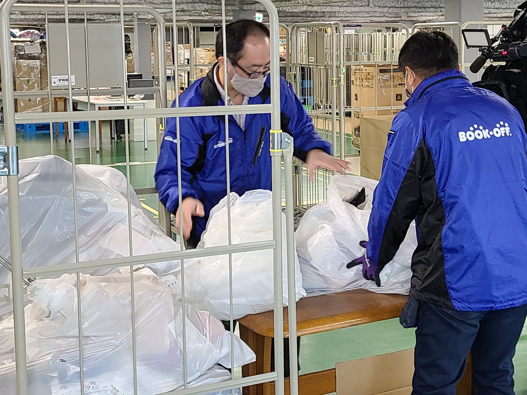 2021年12月に東急電鉄が所有権を取得したお忘れ物から実証実験を開始し、4か月間で約1,240kgをブックオフが回収しました。そのうち62%の768kgは国内外のブックオフ店舗にてリユース商品となり、その他は原則リサイクル資源として循環させています。この結果、2020年度の年間廃棄量25t(月平均2,080kg)に対して、1か月あたり約15%の廃棄量削減につながり、4か月間で約3.2t※のCO2排出削減に寄与しました。
