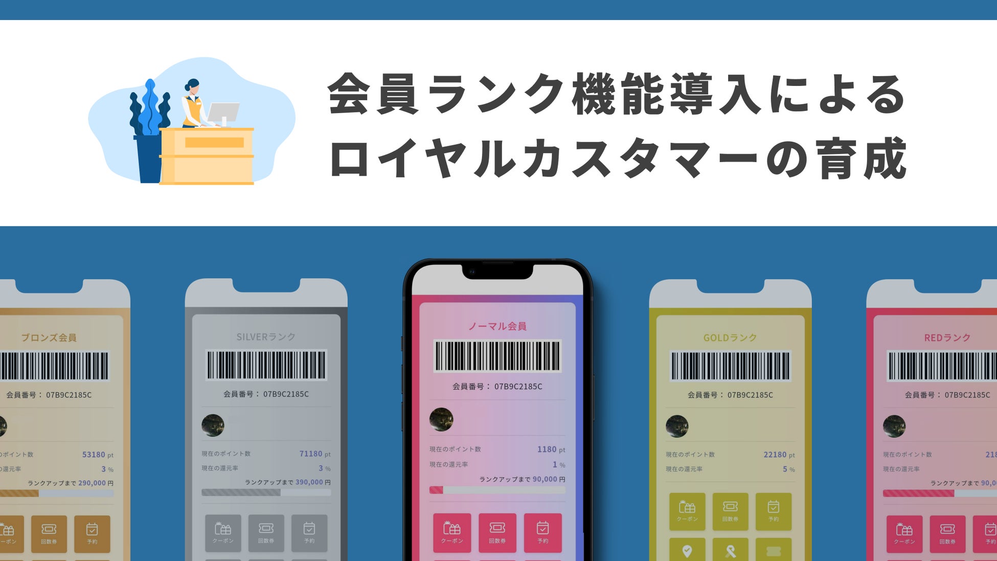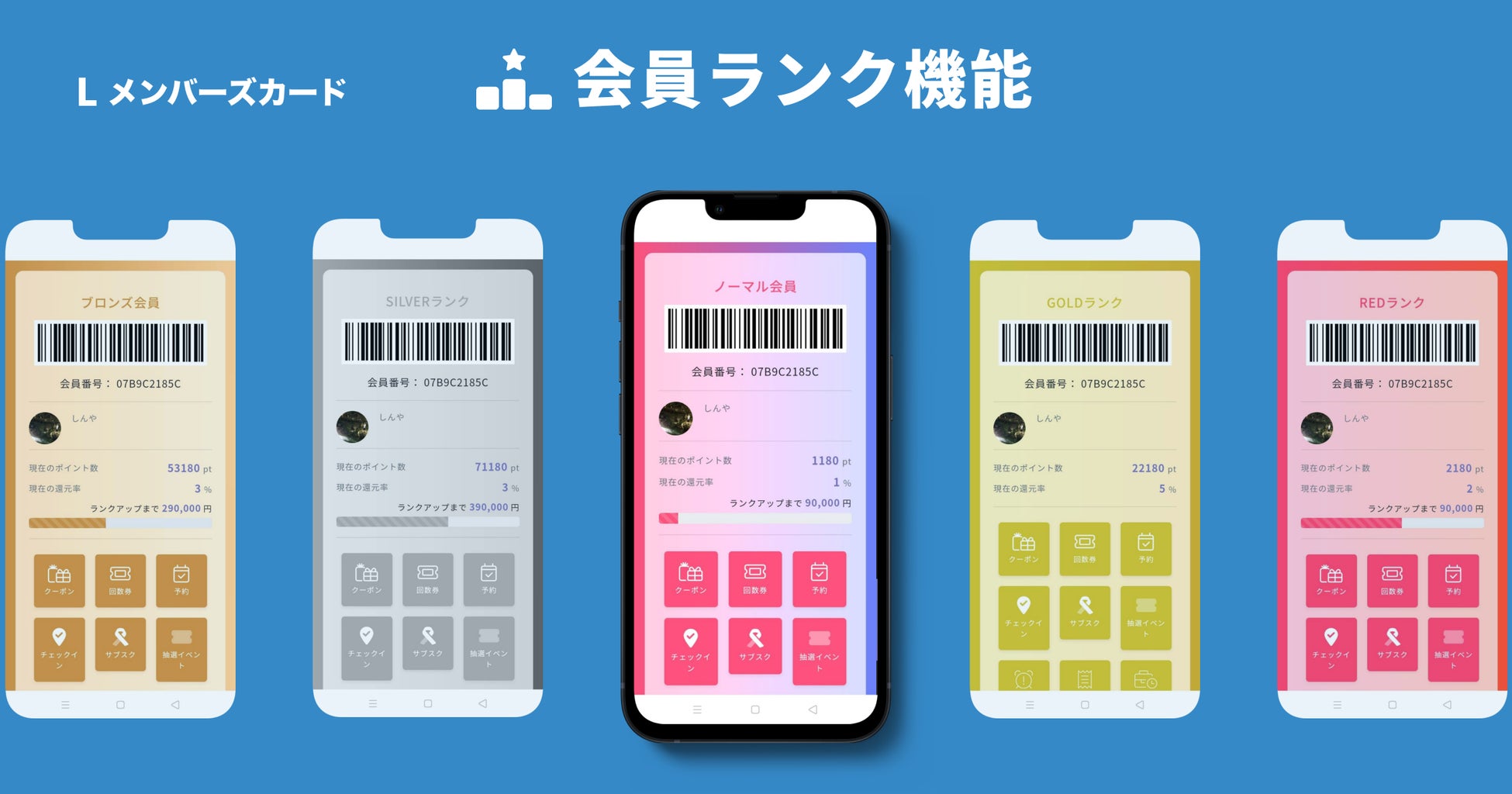 1.ランク毎に会員証の色や見た目を変更できる