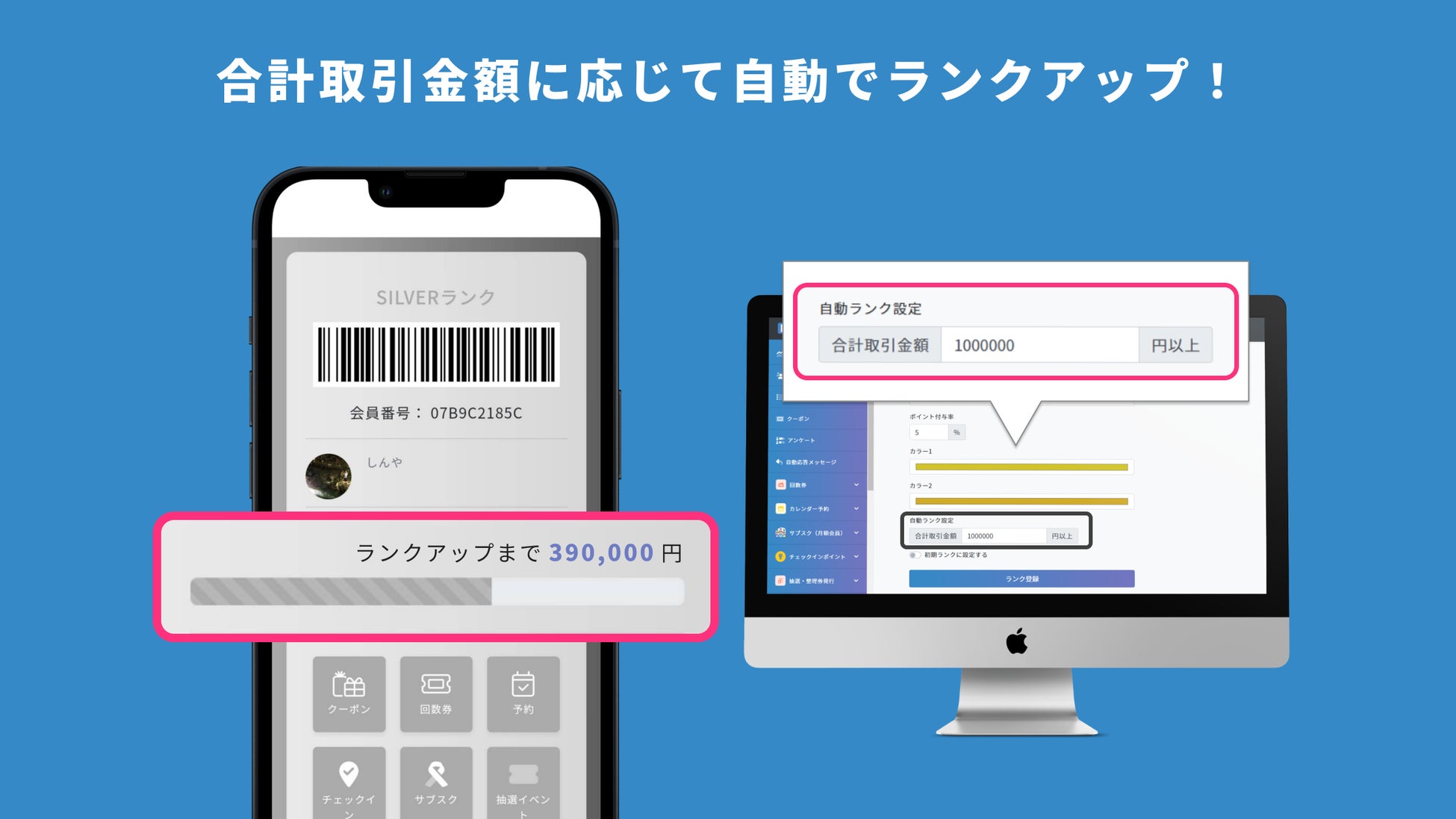 - 合計取引金額に応じて自動ランクアップが可能に!