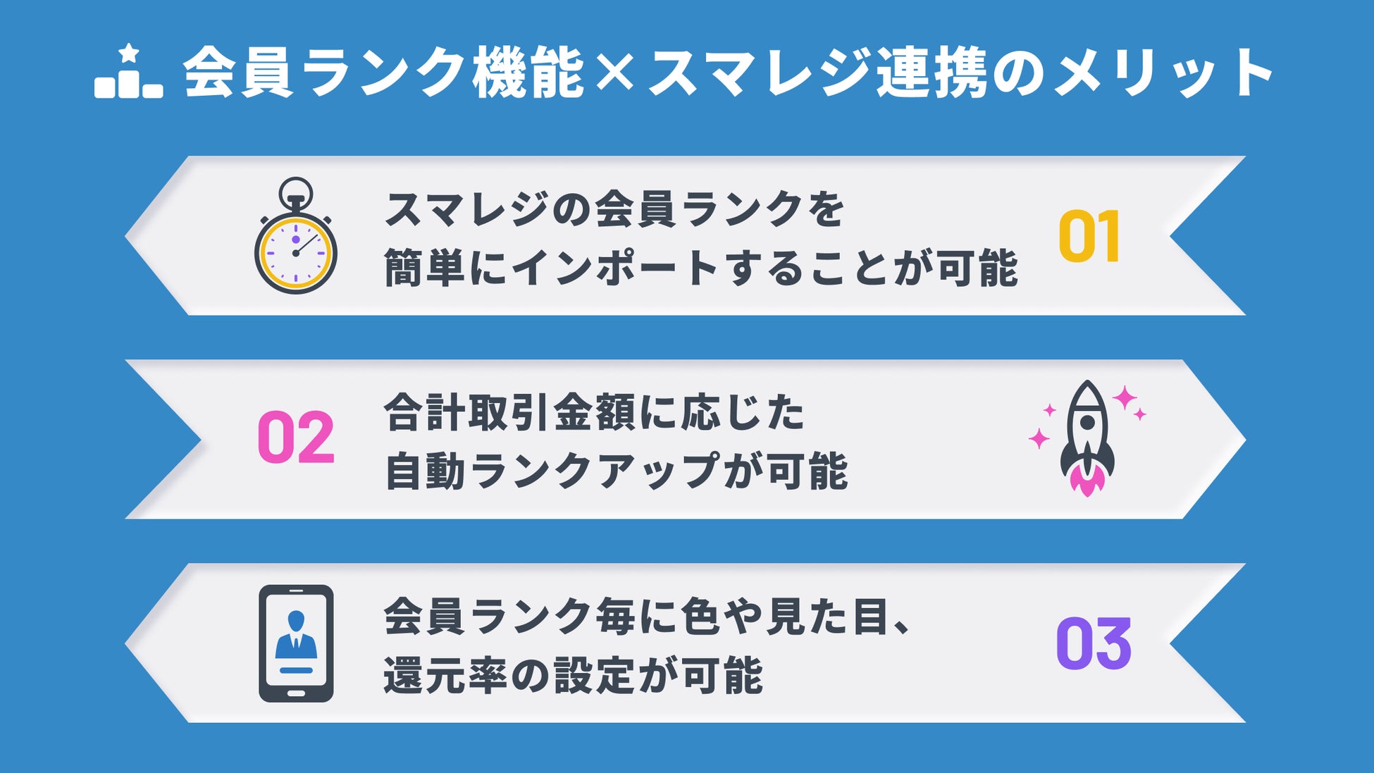 「会員ランク機能」をスマレジと連携させることで、以下のようなメリットがございます。