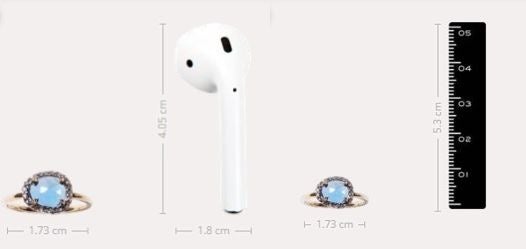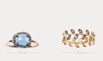 ルーラーやほかのジュエリー、身近なものでのサイズの比較が可能。