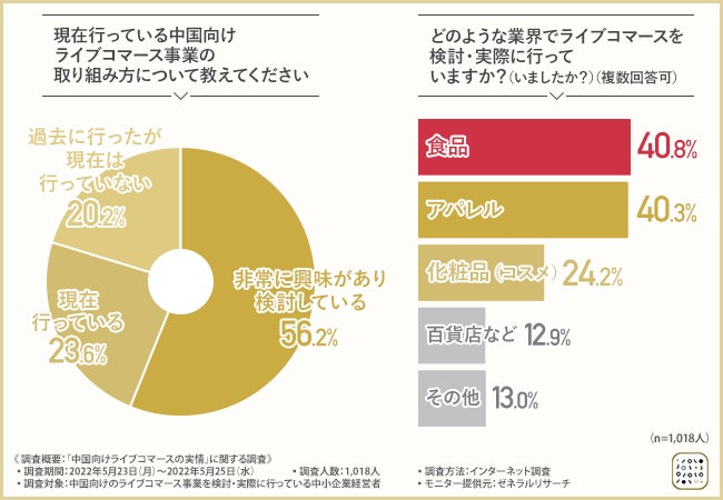 そこで今回、日本国内レディースアパレルの中国向けライブコマース事業に取り組んでいる株式会社JOSOLABhttps://josolive.com/)は、中国向けのライブコマース事業を検討・実際に行っている中小企業経営者を対象に、「中国向けライブコマースの実情」に関する調査をゼネラルリサーチに依頼し実施しました。