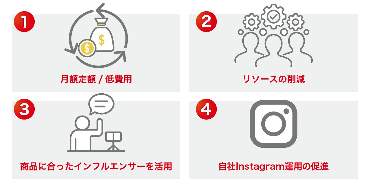①月額定額/低費用でインフルエンサーPRが可能