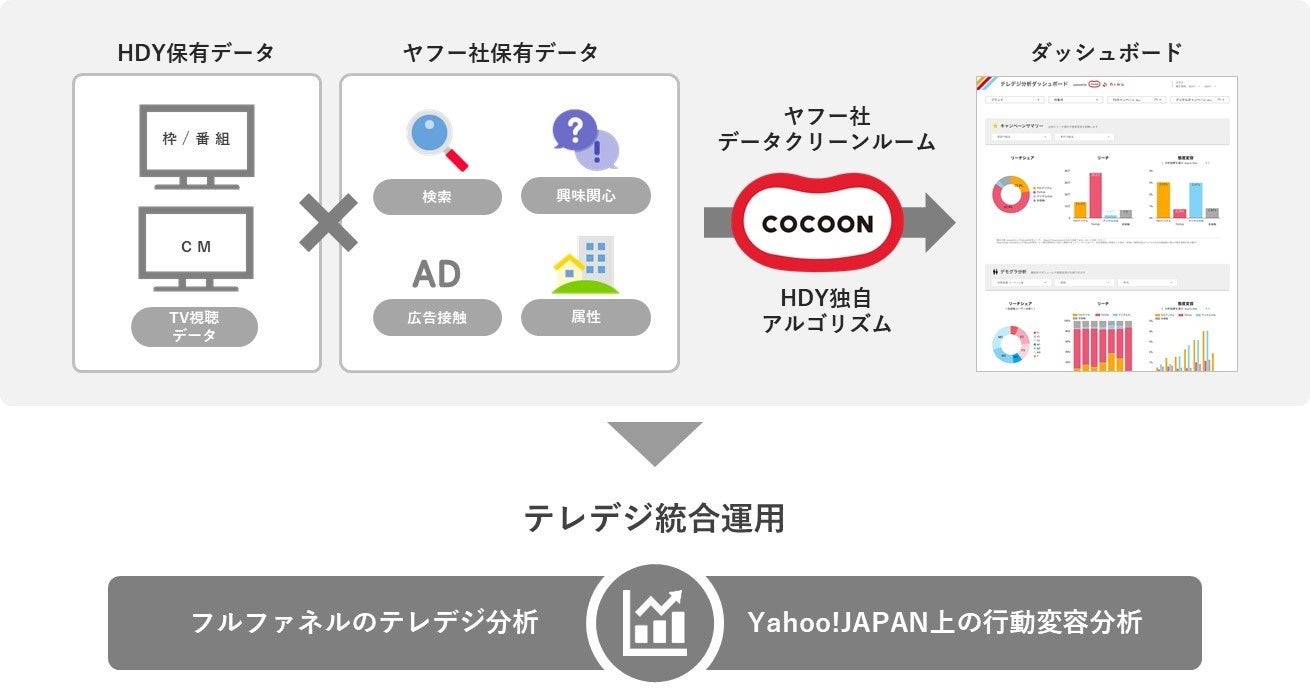 今回のTele-Digi AaaSの機能アップデートには「Yahoo! JAPAN」が保有するデータクリーンルーム「Cocoon」(※2)を活用し博報堂DYメディアパートナーズ独自のアルゴリズムを掛け合わせることで機能を強化し、フルファネルでのテレデジ統合運用への対応が実現しました。