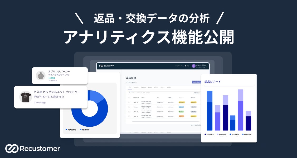 返品・交換・注文キャンセル自動化ツール「Recustomer(リカスタマー)」を運営するRecustomer株式会社(本社:東京都千代田区、代表取締役:柴田 康弘)は、2022年6月23日より返品理由の分析が可能となる「アナリティクス機能」を公開しました。