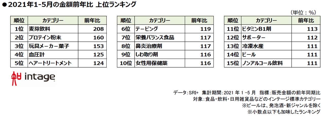 同じく9位・乳酸菌飲料(119%)も、腸内環境の改善やコロナ禍で多くの人が問題を抱えたという睡眠関連の改善などの需要があり数字を伸ばしました。昨年1位だった麦芽飲料も体力増進や貧血対策などで人気が出ていたことを考えると、やはりコロナ禍における健康需要は大きなニーズがあったようです。