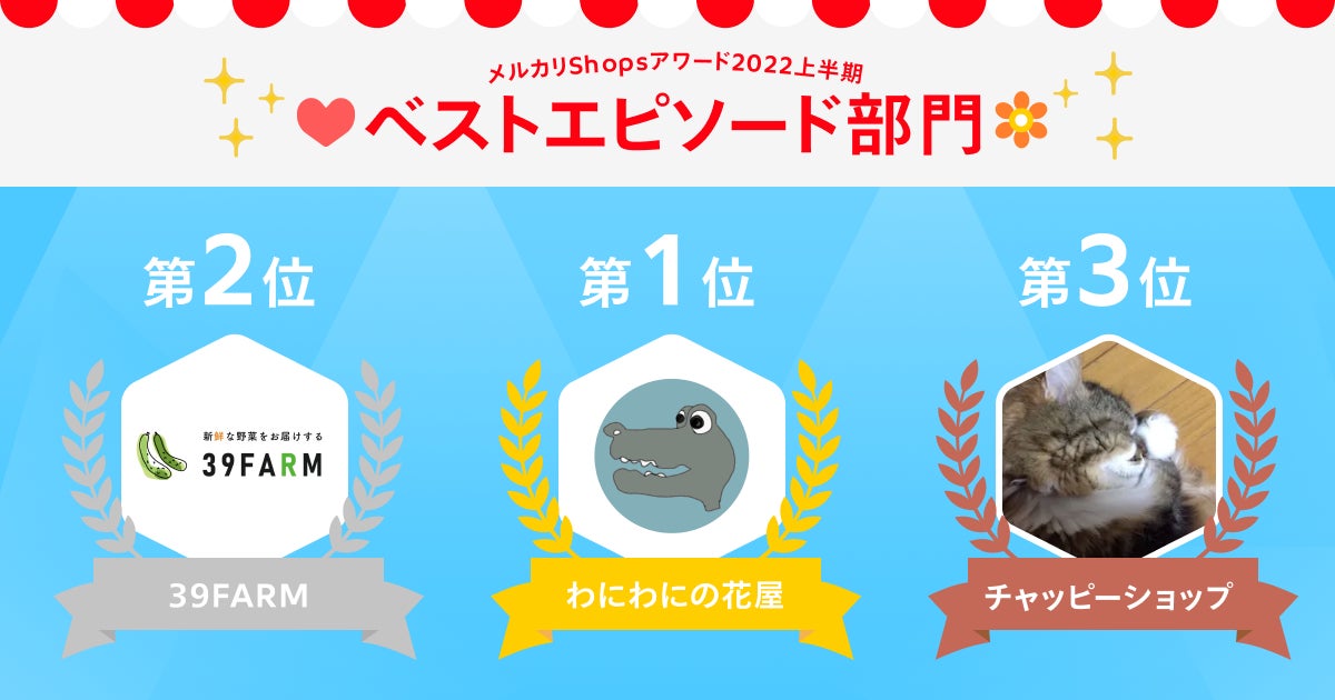 「メルカリShopsアワード 上半期」を受賞したショップをご紹介いたします。各部門の2位、3位に選出された出店者の皆さまのコメント全文は、メルカリShopsマガジンにてご覧いただけます。