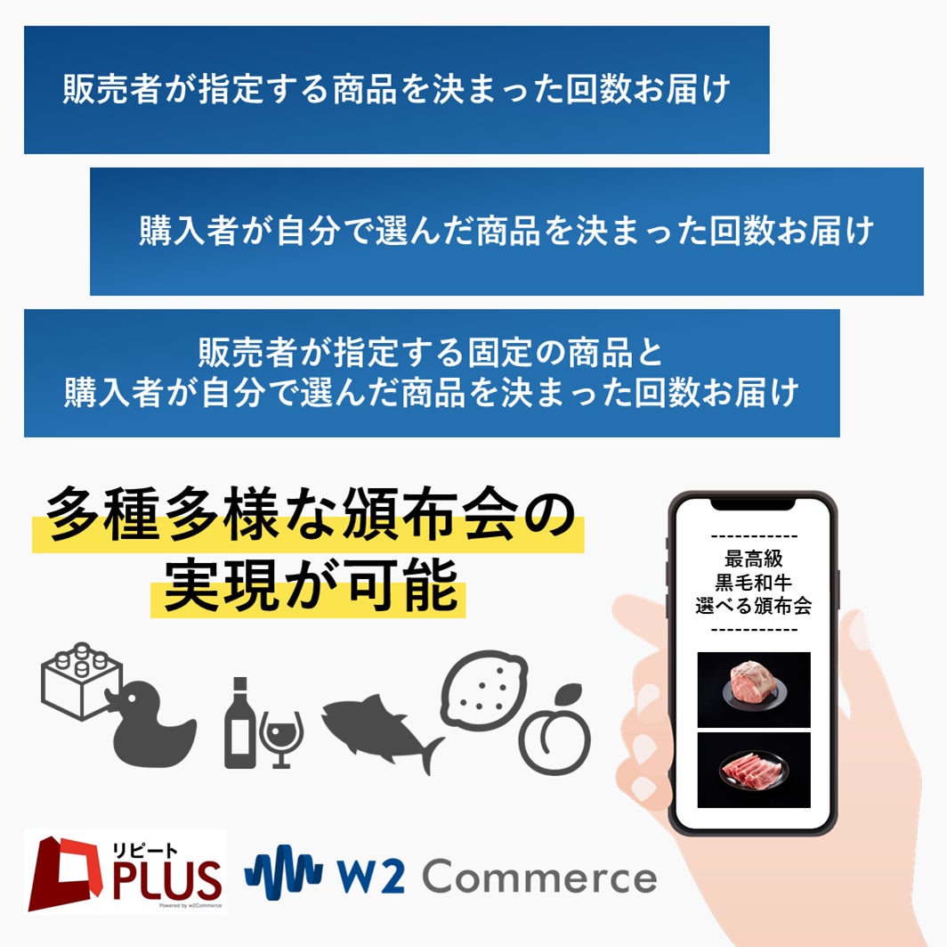 様々なビジネスサイズや商材カテゴリを幅広く対応する高機能ECプラットフォームを提供するw2ソリューション株式会社(本社:東京都中央区、代表取締役CEO:山田大樹)は、D2C定期通販ECサイトシステム「リピートPLUS」・オムニチャネル対応型総合ECサイトシステム「w2Commerce」に頒布会機能を追加しました。従来までカスタマイズで開発をしてきた頒布会機能を、今回の機能追加によりSaaS型リピートPLUS・SaaS型w2Commerceでもオプション機能としてご利用いただけます。通常の頒布会はもちろんのこと、機会・回数・商品を自由に設定ができます。また、頒布会機能のコンテンツ作成も簡単で、利用状況の分析機能も活用できる、多様な頒布会の実現が可能となります。