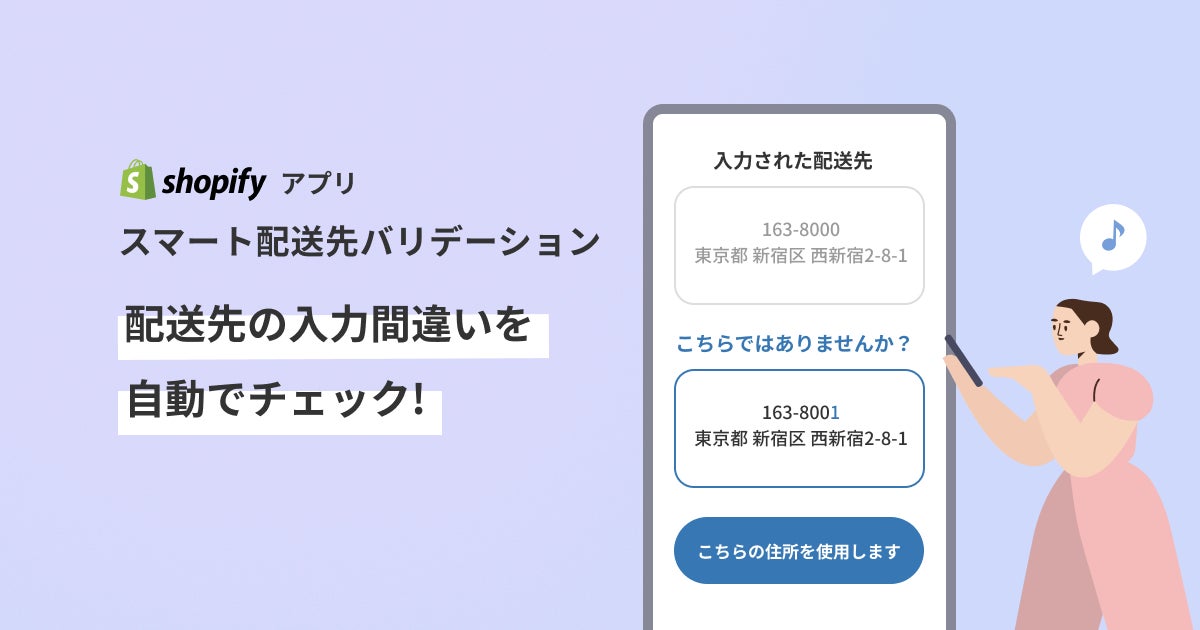 「スマート配送先バリデーション」は、配送先住所の正確な入力をサポートする日本初の Shopify アプリです。