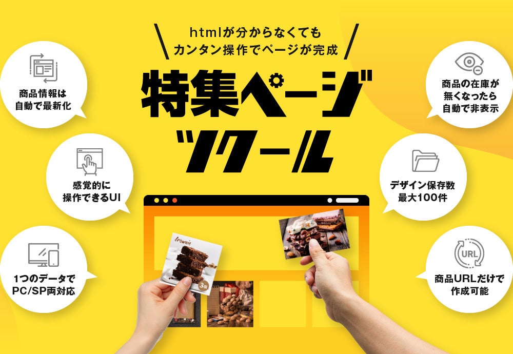 楽天市場やヤフーショッピングでは、「スーパーセール」「バレンタイン」「クリスマス」等さまざまなイベントの度に関連商品を集めた特集ページを作成することが多く発生します。その度にデザイン、コーディング、リンクチェックなど簡単に作ろうとしても数時間はかかってしまいます。