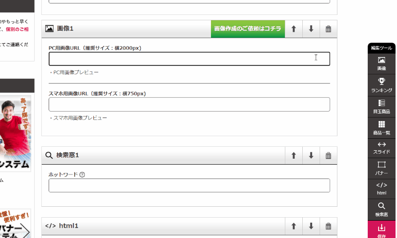 特集ページツクールでは、そんな手間を格段に削減できるシステムとなっております。また「価格変更」「サムネイル画像変更」「売り切れ」なども自動で更新する仕様のため、更新する手間がありません。