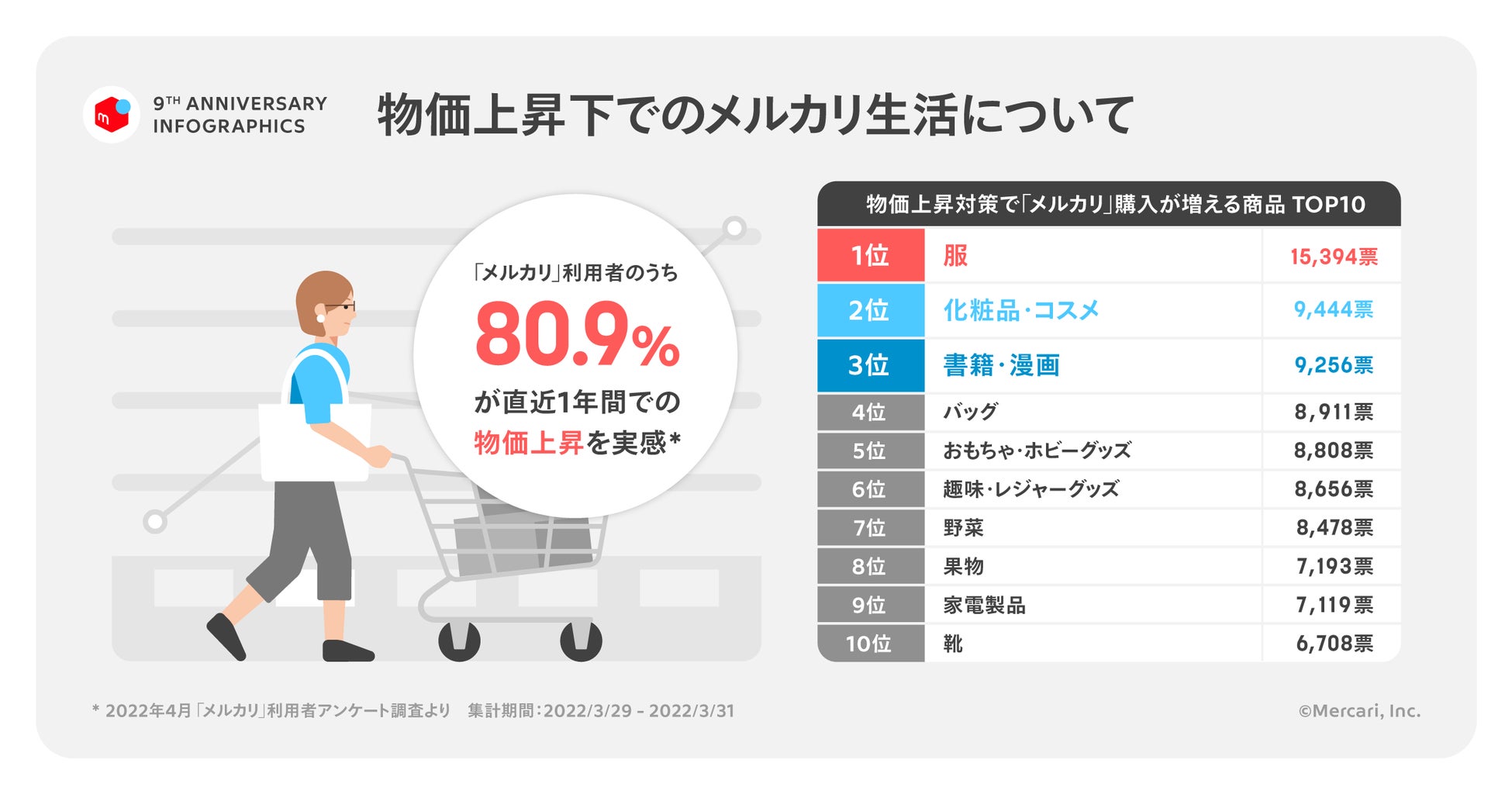 ※2:<メルカリ利用者アンケート調査>80.9%が直近1年間での物価上昇を実感。値上げラッシュを乗り切る生活防衛術 https://prtimes.jp/main/html/rd/p/000000154.000026386.html(調査対象:「メルカリ」の利用者 47,092人)