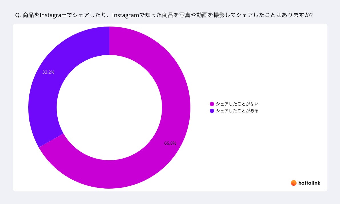 66.8%のユーザーが、商品情報をInstagramでシェアしたり、Instagramで知った商品を写真や動画を撮影してシェアした経験があると答えました。