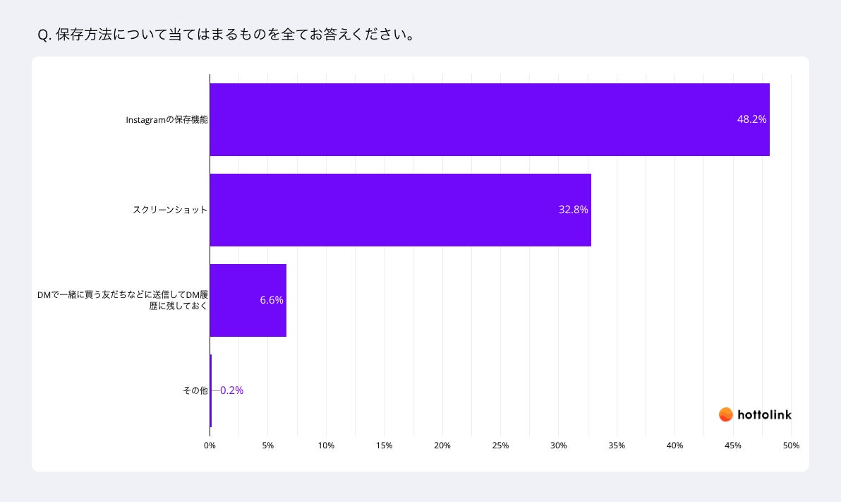 Instagramの保存機能以外にも、スマートフォンのスクリーンショット機能やInstagramのDMでのシェア機能を使うことで、後から投稿を見返せるようにしていることがわかりました。