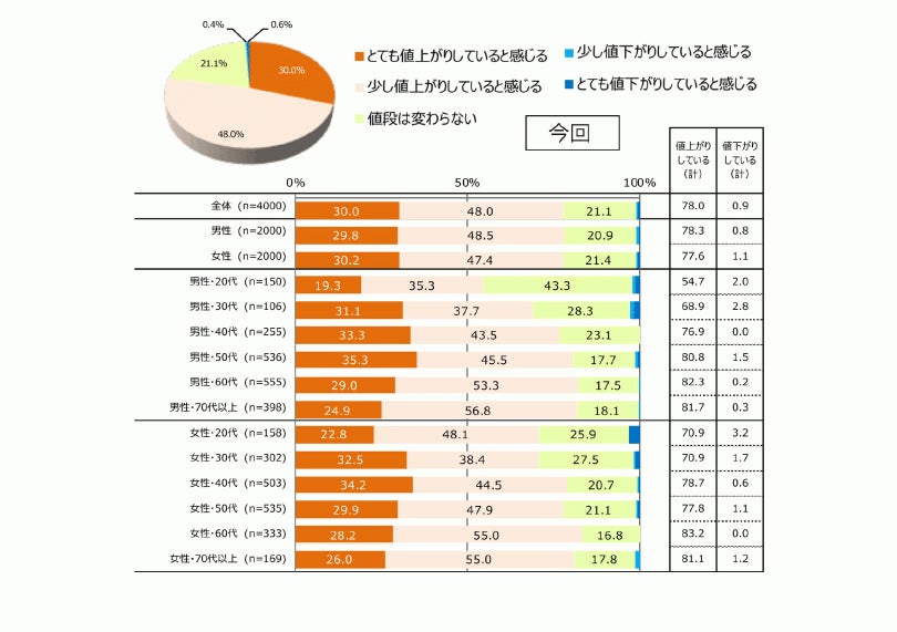 - 今年1月と比べて「値上げの実感」は大幅に上昇
