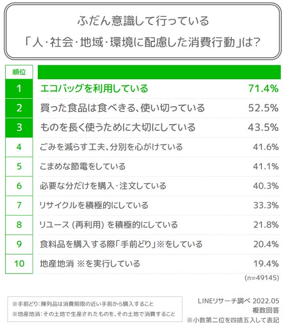 「人・社会・地域・環境に配慮した消費行動」について、ふだん意識して行っているものについて聞きました。