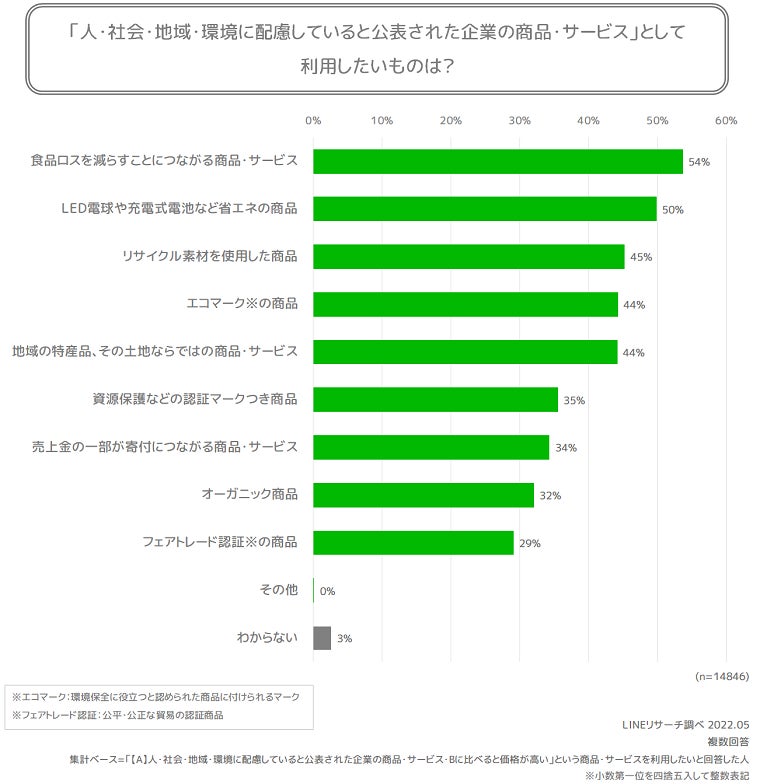 このたびLINEリサーチでは、日本全国の男女を対象に、SDGsの17のゴールとも密接に関わる「エシカル消費」について調査しましたので、その結果をお知らせいたします。