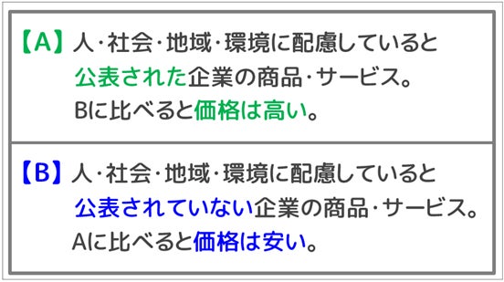 (※人・社会・地域・環境に配慮していると公表された企業の商品・サービス。Bに比べると価格が高い)