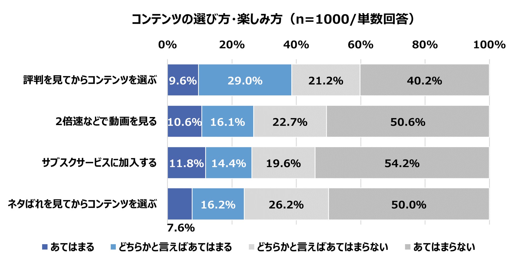 エンタメ系コンテンツの選び方・楽しみ方も「高効率」を求めてモノ・コトを見定めて選ぶ姿が見えてきました。「評判を見てからコンテンツを選ぶ」と回答した方が約4割と「失敗したくない」という意識がうかがえる結果となっています。