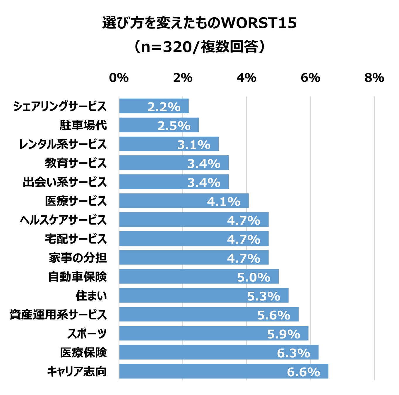 多くの商品・サービスの選び方や消費の仕方が変わっていく中で、変わらないものはあるのでしょうか。選び方を変えたいと思ったもの・変えたもの下位を見てみましょう。