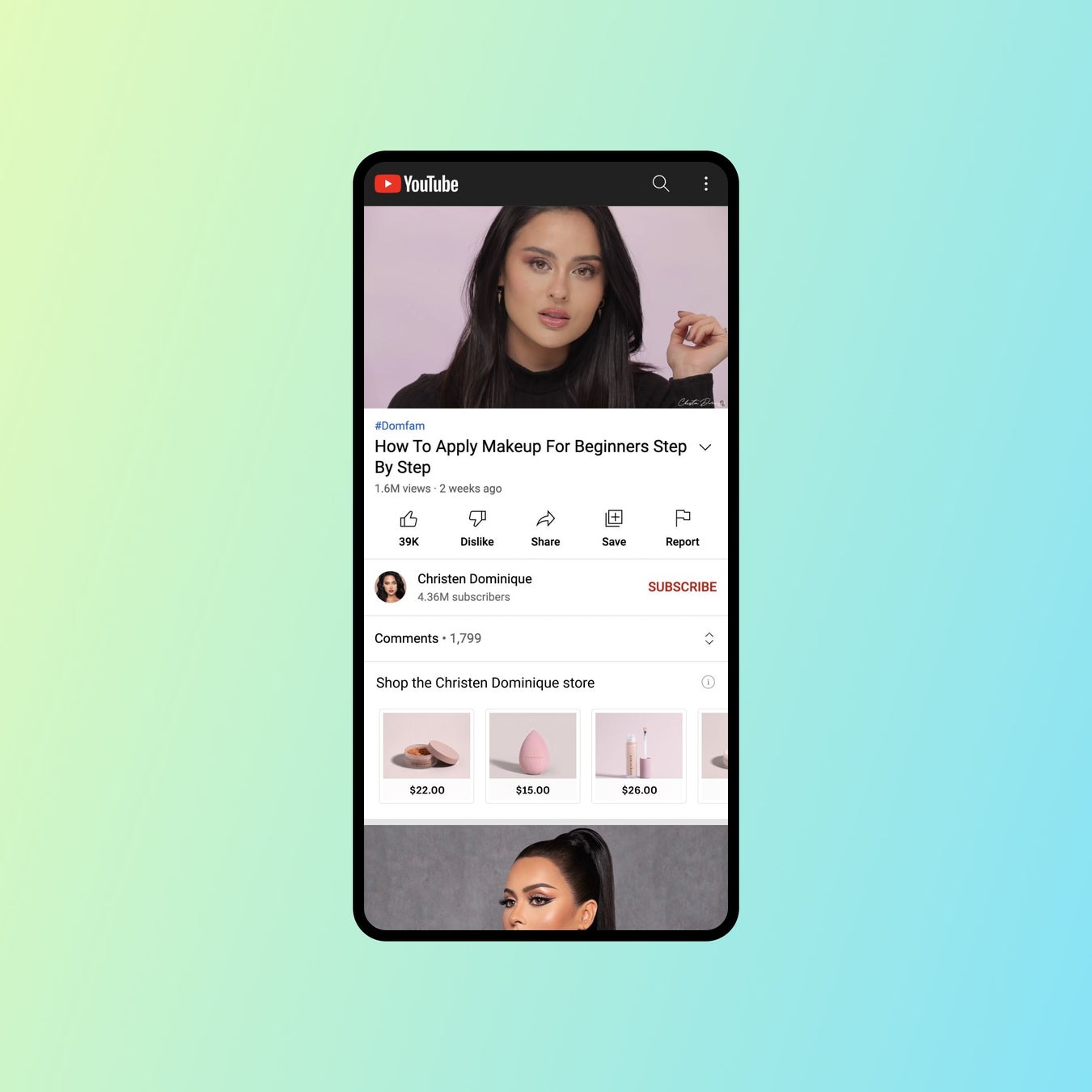 「ビジネスに使っているECプラットフォームと、もっともオーディンスのエンゲージメン率が高いプラットフォームを統合することは、私にとって、大きな変化をもたらすでしょう。」とChristen Dominique氏(YouTuber兼ドミニク・コスメティックCEO)は述べています。「ビジネスを成長させる新しい方法を探している事業家として、お客様が買い物をする場所でプレゼンスを持つことは非常に重要であり、ますますそれがYouTubeになってきています。ShopifyとYouTubeの統合により、ドミニク・コスメティックスの新製品を私の動画やライブストリーミングの中で直接紹介することができます。その結果、視聴者は動画を見ている間に簡単に気になった商品を購入することができるようになります。」