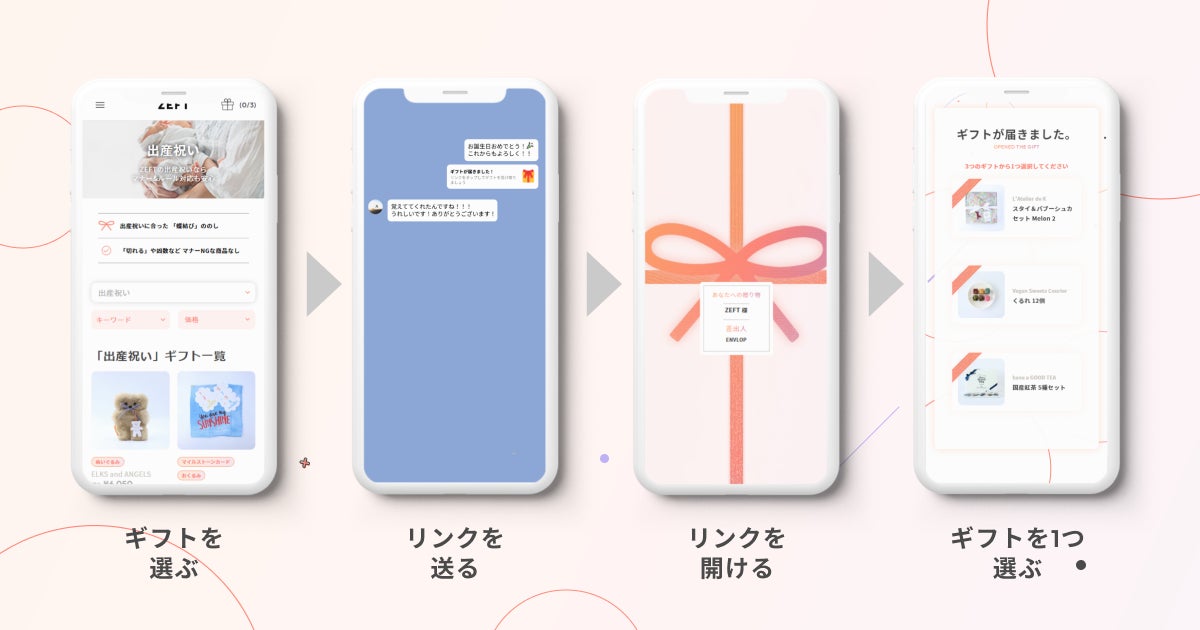 ギフトサービス「ZEFT」は数クリックで相手が選べるギフトカタログを作成します。従来のカタログギフトと比較して、素早く、オリジナリティのあるカタログの作成が可能で、カタログは LINE やメールなどで簡単に贈れます。オンラインで完結するZEFTは、多忙な現代人のライフスタイルにピッタリなギフトの贈り方を実現します。