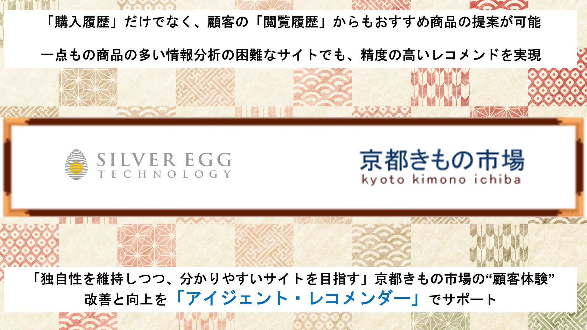 シルバーエッグ・テクノロジーは、同社が開発・提供するAI技術を用いたリアルタイム・レコメンドサービス「アイジェント・レコメンダー」を京都きもの市場の公式ECサイトに導入しました。