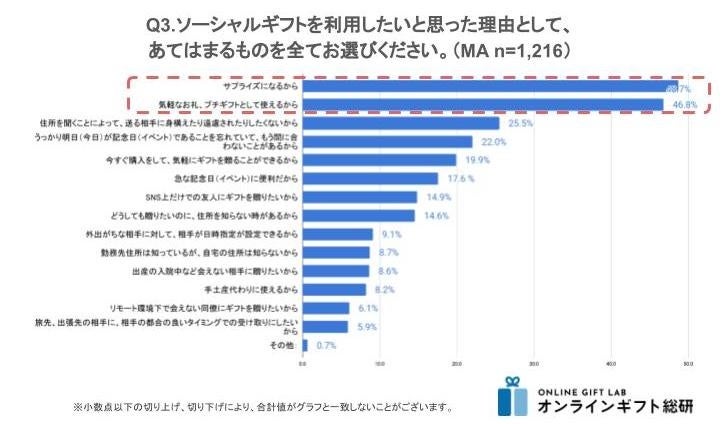 3. 利用理由は「サプライズ」・「手軽なお礼」が圧倒的、ソーシャルギフトは「新しいギフトのコミュニケーションの仕方」