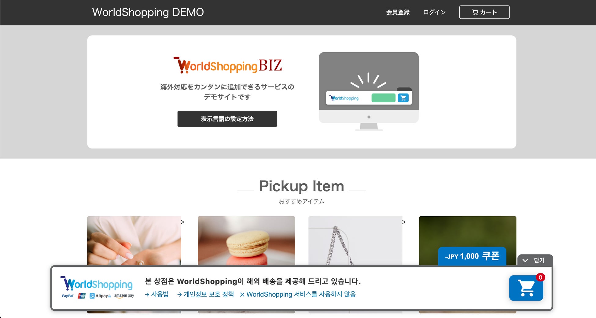 【WorldShopping BIZ デモサイト】にて、実際のカート表示イメージをご覧いただけます。