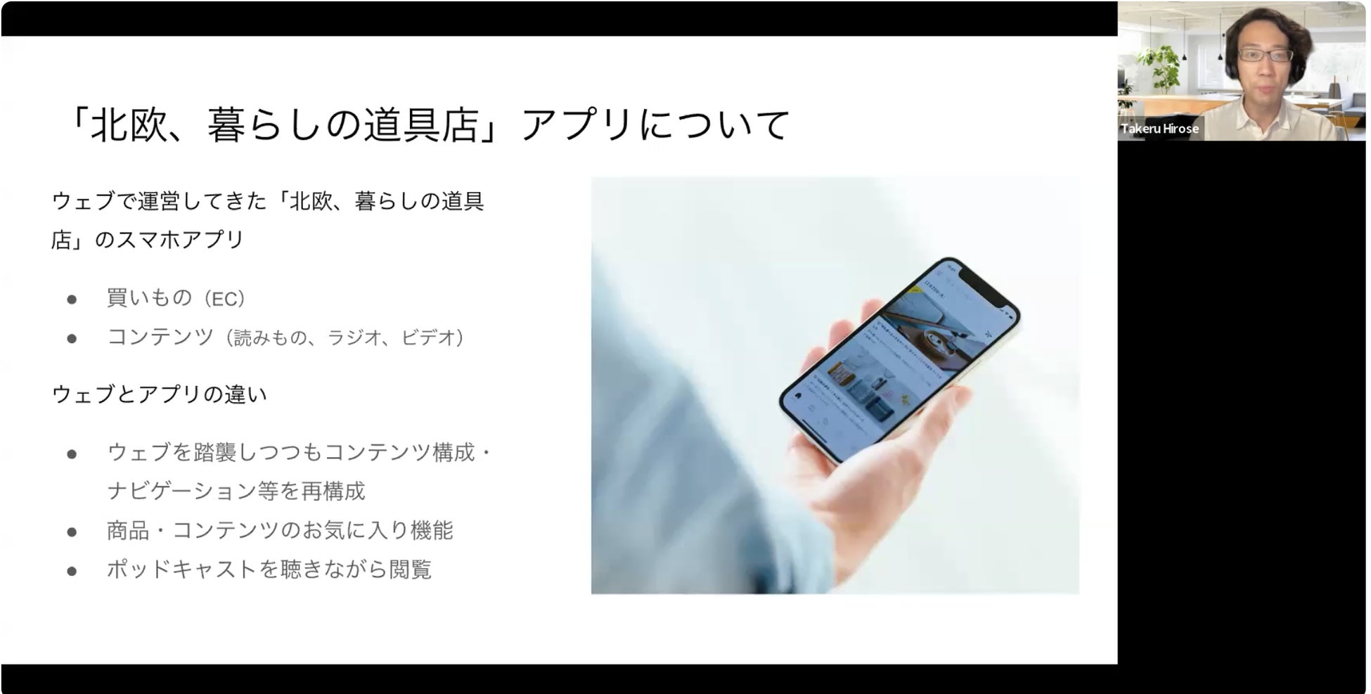 2007年のサービス開始から、開発当時で既に12年の歴史ある「北欧、暮らしの道具店」をアプリ化するプロジェクトは、2019年からスタートしました。いかにしてWebサイトの成長を維持しつつ、顧客に利用されるアプリを作ったのか。アプリの開発で当初抱えていた課題や、開発を進める中で特にこだわった部分、2年経った今だから語れる失敗体験など、開発エンジニア、デザイナー目線でアプリ開発の裏側をZOOMで解説しました。