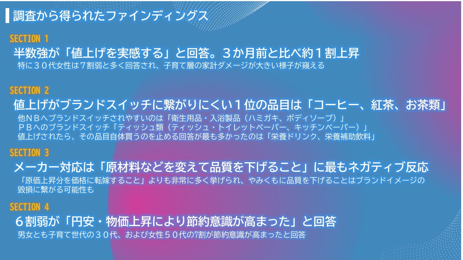 以上、値上げラッシュの夏、消費者はどう行動する? 値上げに関する意識・行動調査<2022夏>の結果を抜粋してお伝えしました。