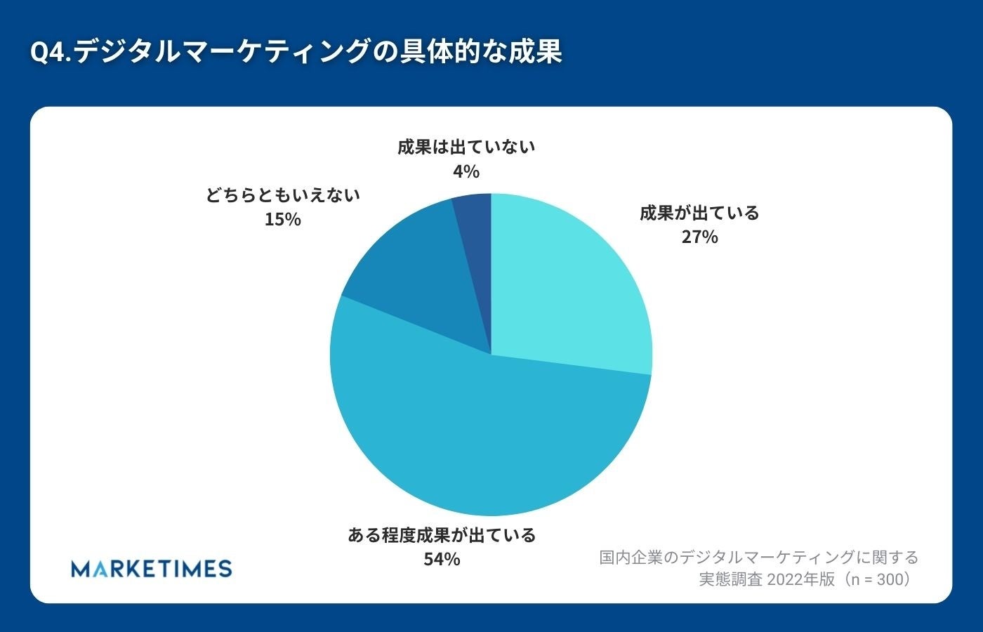- デジタルマーケティングの成果は「成果が出ている」「ある程度成果が出ている」で81%