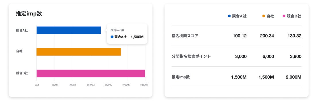 今回のフリーミアム化により、無料で約4500ブランドのテレビCMを対象に指名検索数、放映量(インプレッション・imp)のサマリー分析を行うことが可能になります。