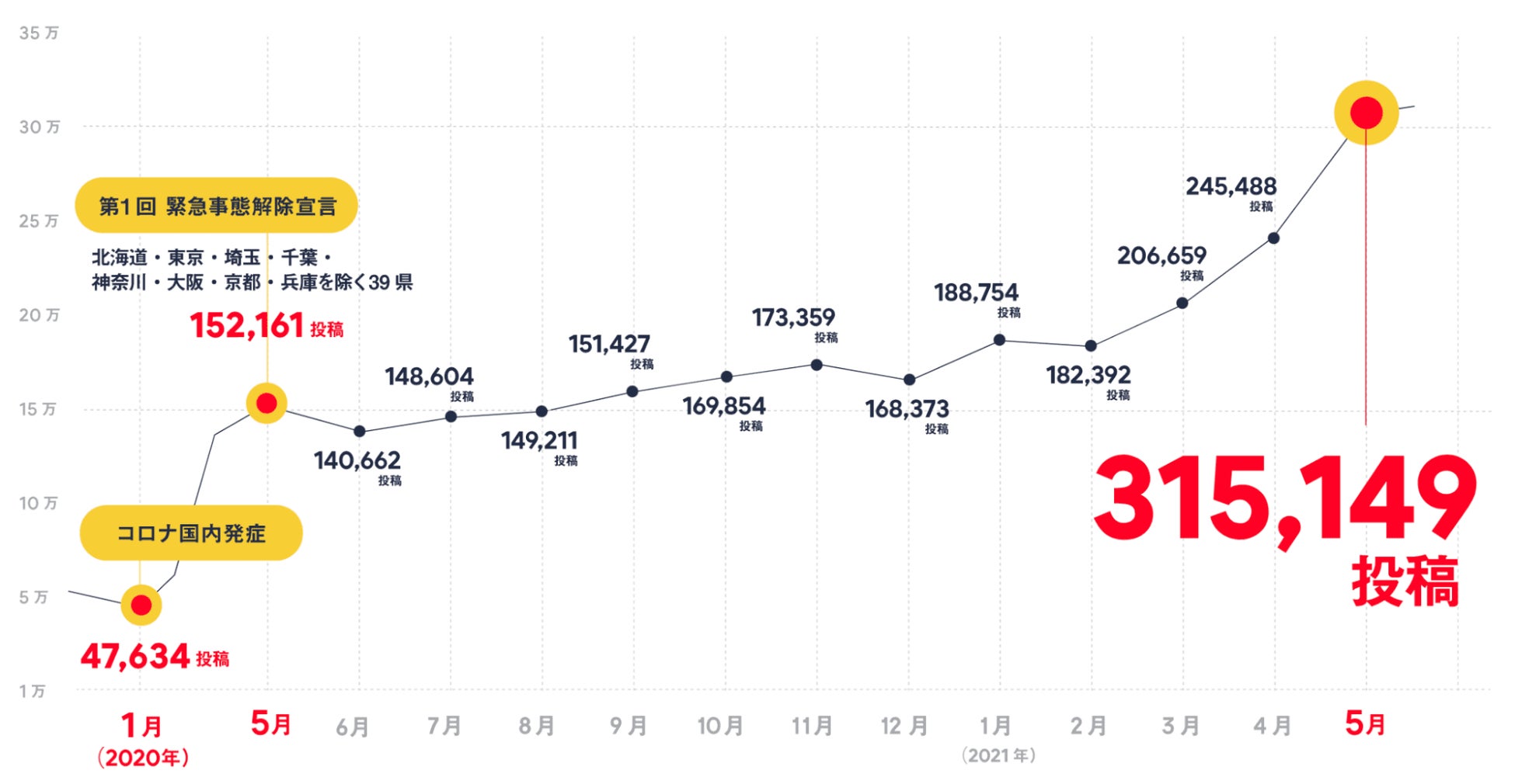コロナ禍による巣ごもり消費の影響で、2020年の物販系EC市場規模は12兆2,333億円と大きく伸張しました。ECサイトでの売上拡大を支えているのが、店舗スタッフが作成したオリジナルコンテンツです。「STAFF START」経由で公開されたコンテンツ数も、巣篭もり消費の拡大に合わせて増加しました。