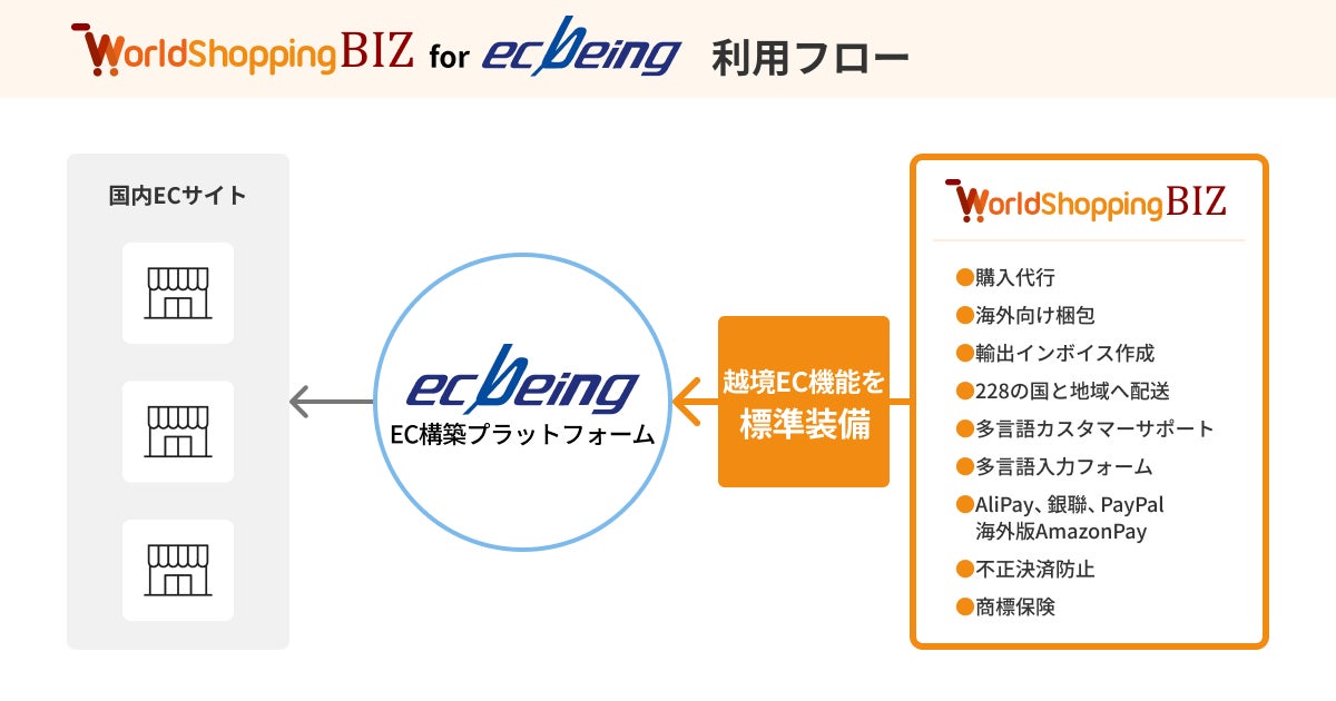 今回、「WorldShopping BIZ」にもう1つのサービスラインとして誕生した「WorldShopping BIZ for Cart」に賛同いただき、株式会社ecbeingが運営する「ecbeing」との連携を開始いたしました。