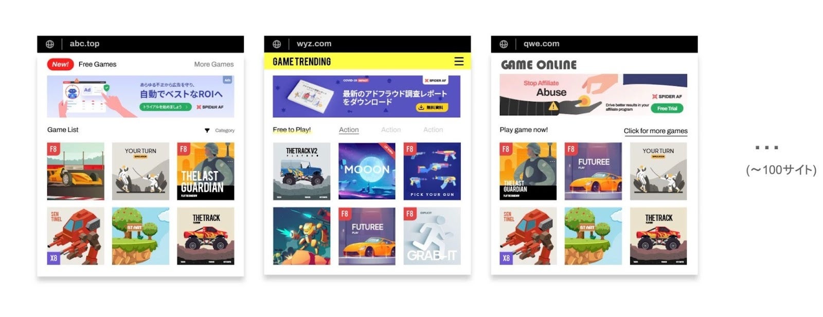 Spider AFが検知した不正広告配信面(イメージ)