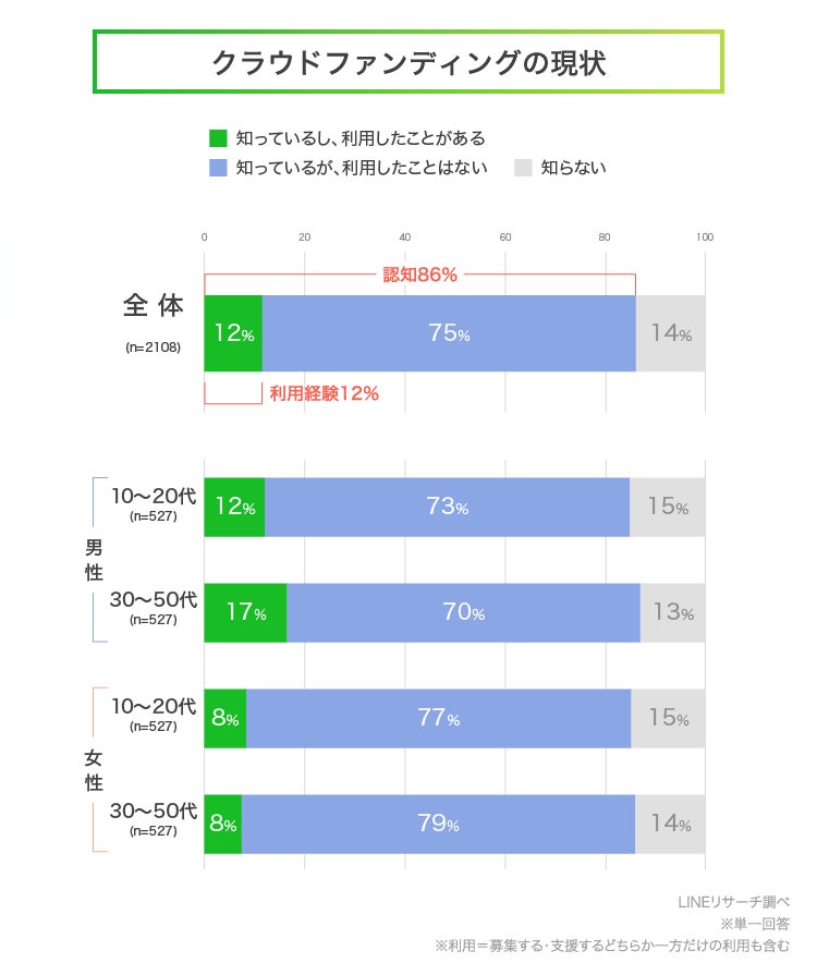 (※今回のクラウドファンディングの利⽤調査では、募集する(⽀援を受ける)側・⽀援する側、どちらか⼀⽅だけの利⽤も含みます。)
