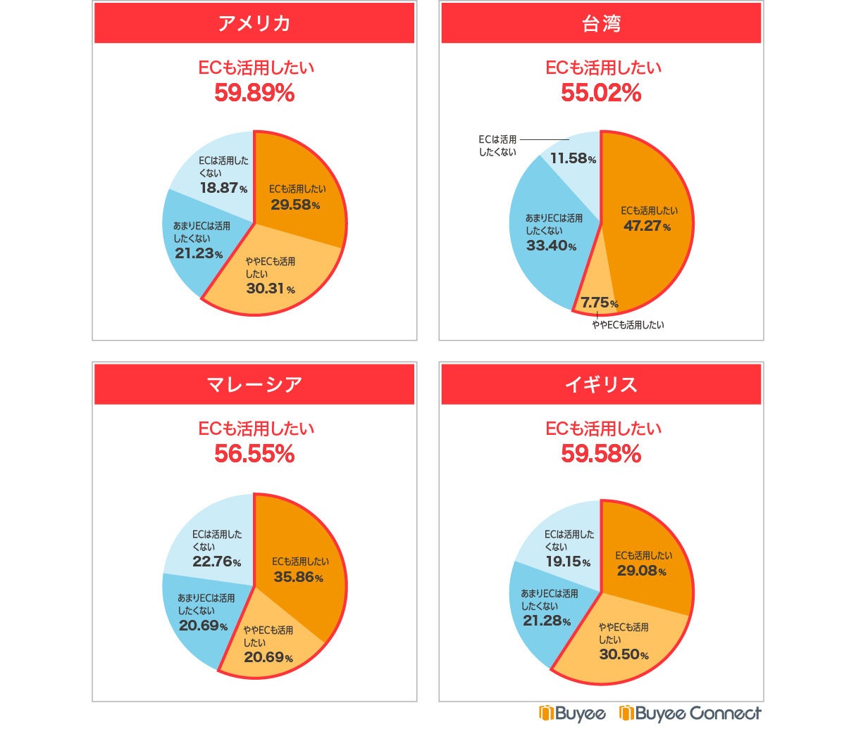 BEENOS株式会社(東証プライム:3328)の連結子会社で、越境ECおよびジャパニーズコンテンツの海外進出をサポートするBeeCruise株式会社(以下「BeeCruise」)は、同じく連結子会社であるtenso株式会社(以下、tenso)が運営する海外向け購入サポートサービス「Buyee(バイイー)」、タグ設置のみで海外販売可能な「Buyee Connect」を利用されている海外のお客様 約1,900名(アメリカ、台湾、マレーシア、イギリス)に「越境ECの利用意向」に関するアンケートを実施しました。